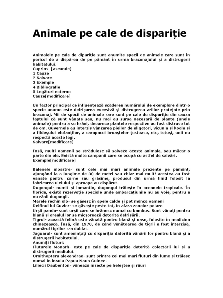 Animale Pe Cale De Disparitie Si Disparute
