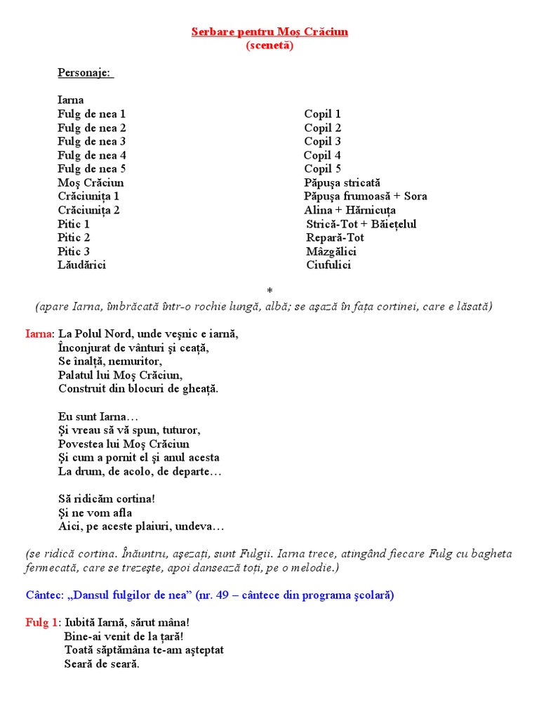 Eu sunt fulgul vestitor si sunt vesnic calator naintea lui craciun vin n seara de ajun. Program pentru serbarea de craciun.
