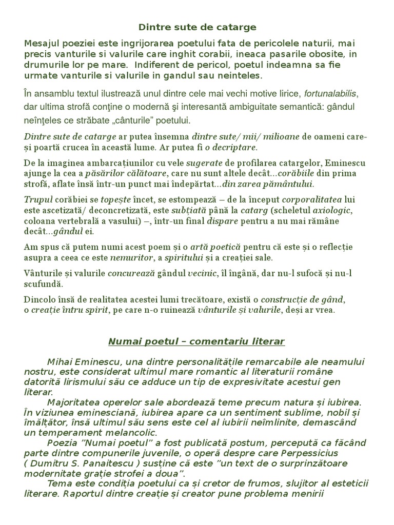 Dintre Sute De Catarge Poezie De Mihai Eminescu Colectionara De Carti