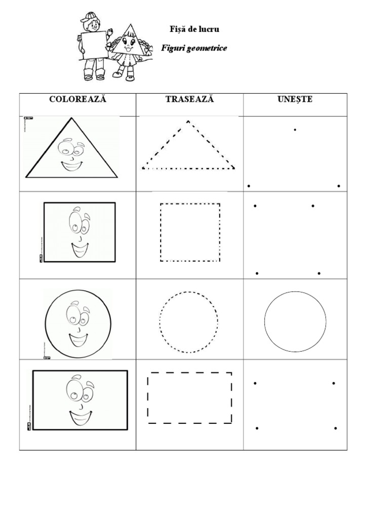 Figuri Geometrice Coloreaza Traseaza Fise De Lucru Cards