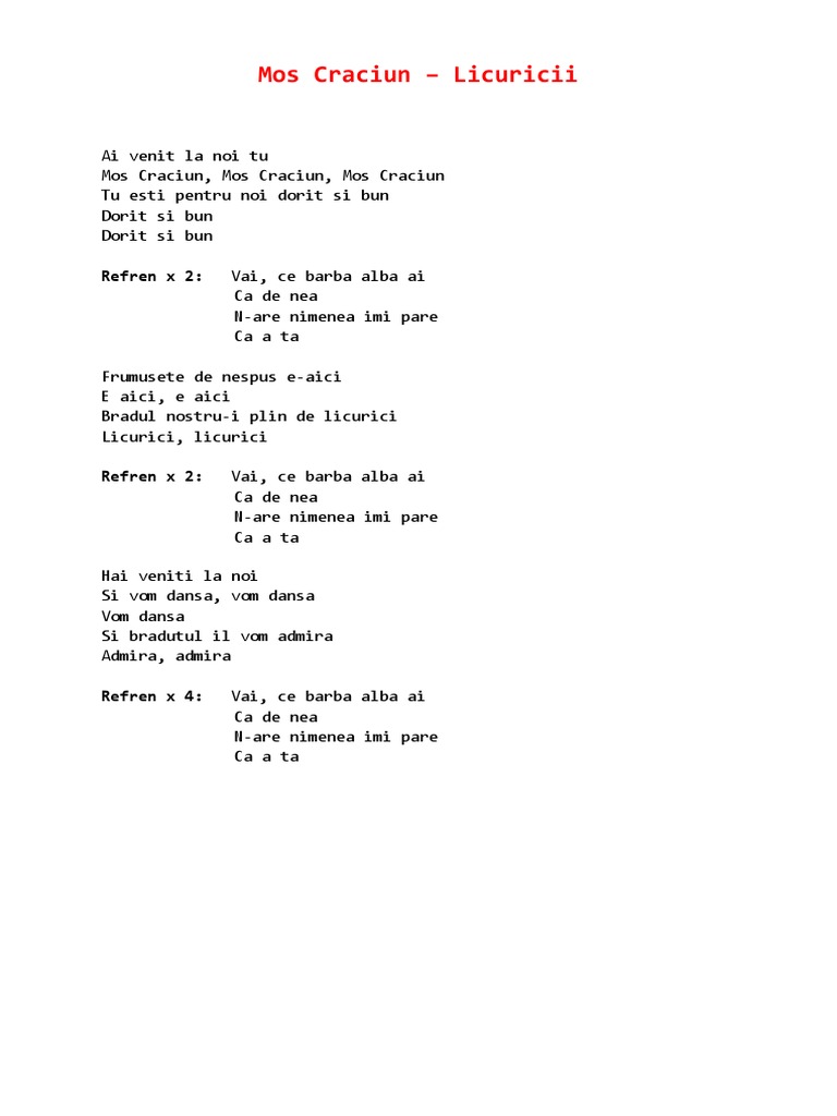 Mos Craciun De Unde Vii Versuri Cantec Docx