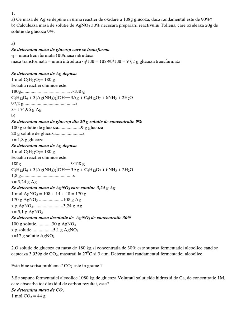 O Solutie De Glucoza Cu Masa De De 240 G Este Tratata La Cald Cu Reactivul Tollens