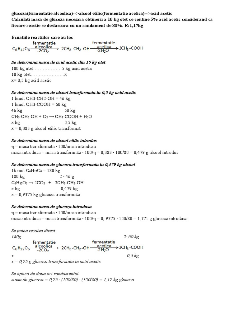 Care Este Cantitatea De Glucoza Necesară Obținerii A 2 037 Kg Etanol 35 In Condițiile Unui Randament Brainly Ro