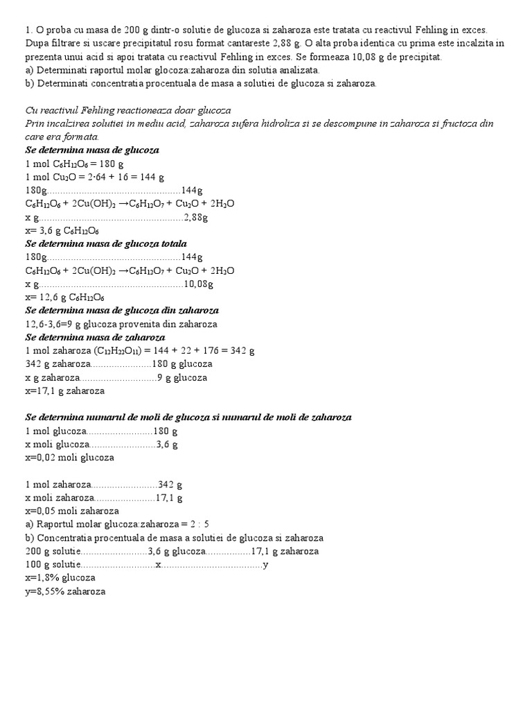 O Proba Cu Masa De 200 G Dintr O Solutie De Glucoza Si Zaharoza Este Tratata Cu Reactivul Fehling Pnxk0edzv94v