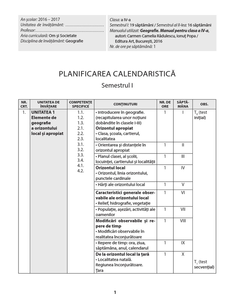 Planificare Calendaristica Clasa 2 Editura Arthur