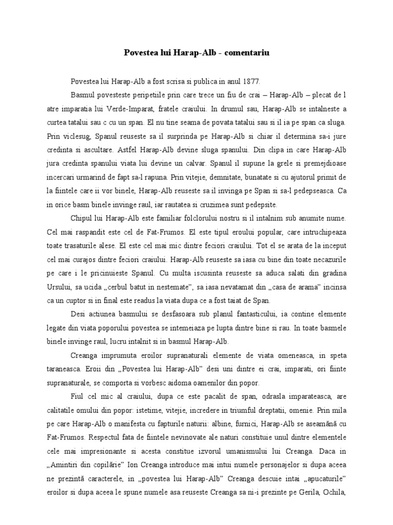 Povestea Lui Harap Alb De Ion Creangă Rezumat Mihai Dorian Academia Edu