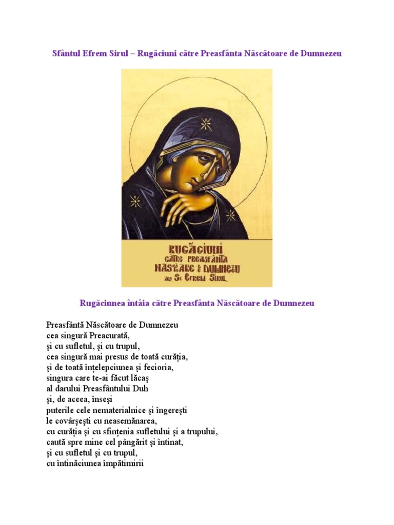 Sfantul Efrem Sirul Rugăciuni Către Preasfanta Născătoare De Dumnezeu