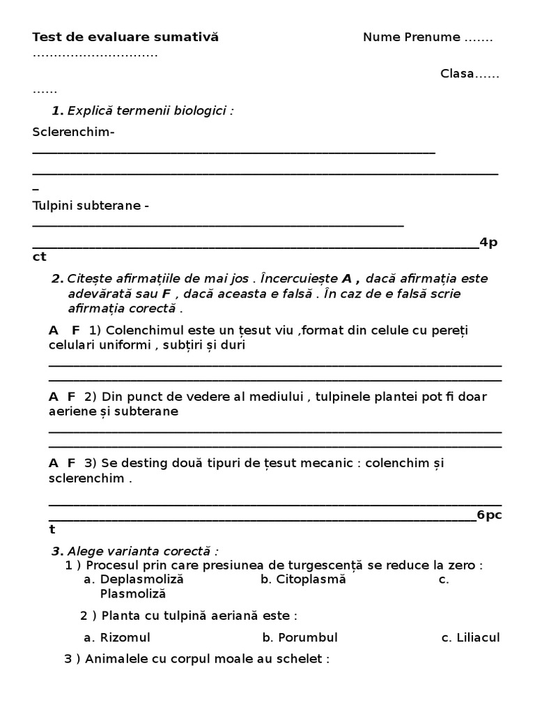 Referat Test De Evaluare Sumativa La Biologie Clasa A Ix A 322549 Graduo