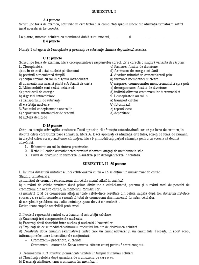 Doc 5 Test Biologie Eval Ii Si Barem Bogdan Costea Academia Edu